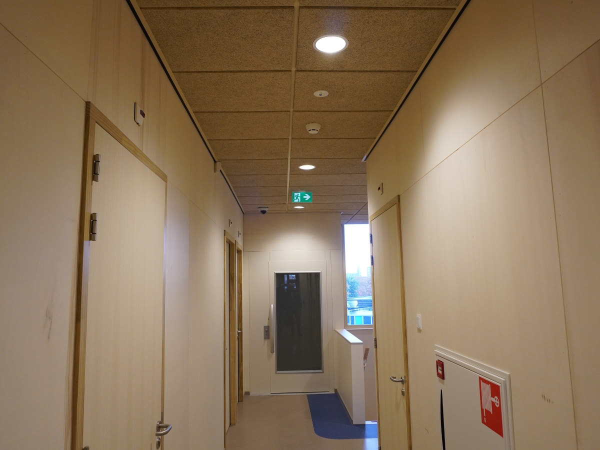 Materiaalkeuze staat centraal tijdens het ontwerpen van een circulair project. Bij de bouw van het IKC Hanzewijk zijn waar mogelijk hernieuwbare en hergebruikte materialen toegepast, bijvoorbeeld de houten vloeren en de plafondplaten, welke uit een ander schoolgebouw komen. In samenwerking met Pranger Rosier is hier de keuze gemaakt voor de duurzame noodverlichtingsarmaturen van Famostar. Sinds 2024 produceert Famostar al haar armaturen van een bio-circulair polycarbonaat. De keuze voor dit materiaal heeft direct invloed op de milieu-impact van de armatuur. Het wordt gemaakt van onvermijdelijke afvalstromen, zoals afgewerkte oliën en houtpulp en is in prestatie identiek als conventioneel polycarbonaat. Daarom zijn ook deze armaturen voorzien van onze 10 jaar armatuur- en 8 jaar accugarantie.