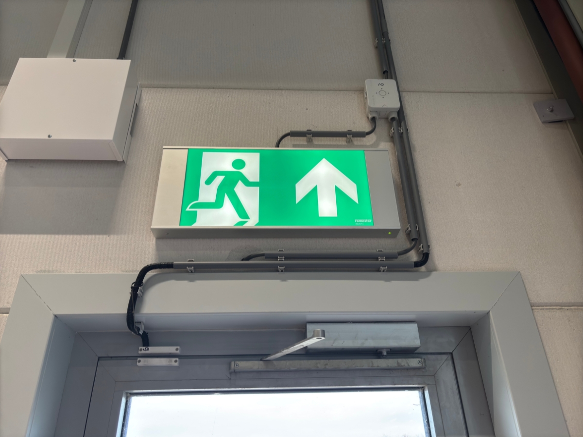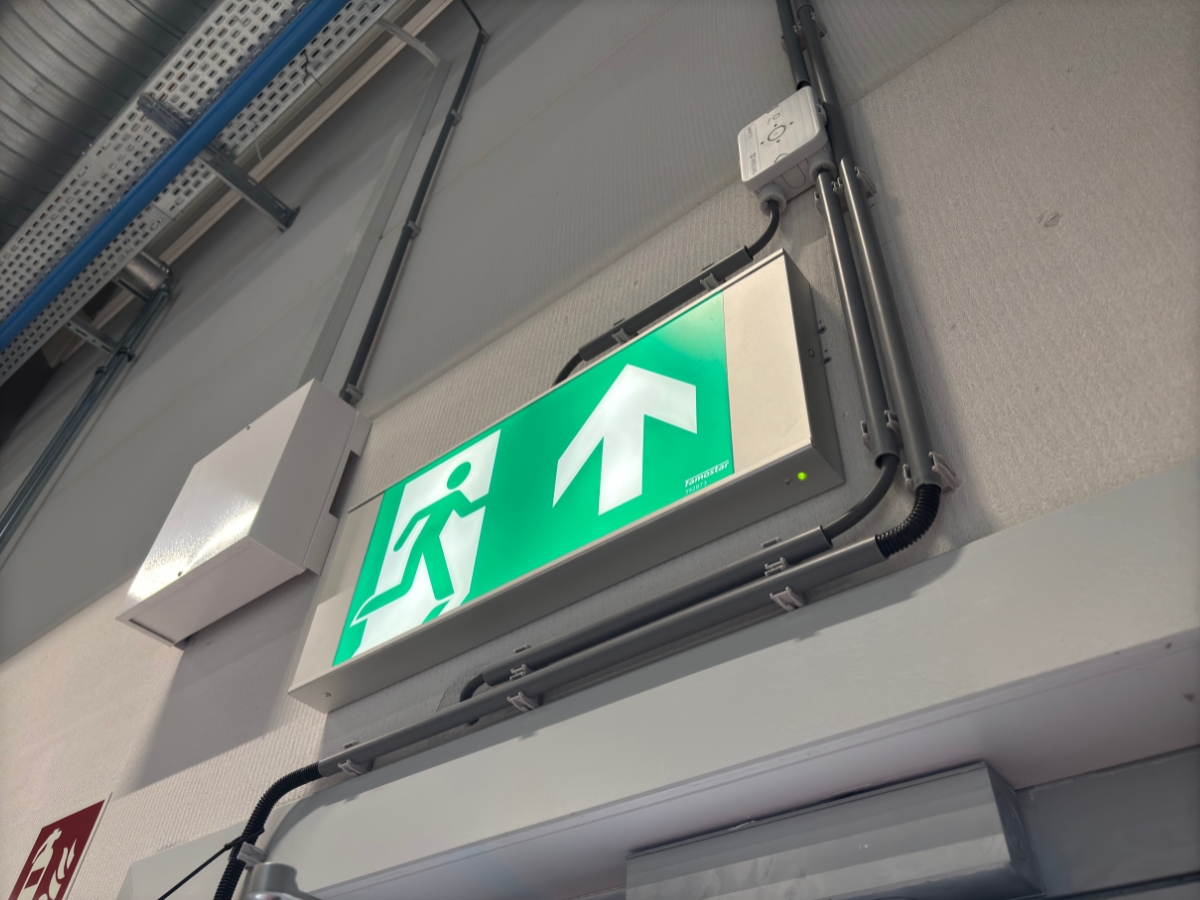 Op deze locatie is de HiVision van Famostar toegepast. Een aanduidingsarmatuur met een extra groot pictogram, waardoor een herkenningsafstand van maar liefst 50 meter gerealiseerd wordt. Dit is dubbel de afstand van een normale pictogram, waardoor deze armatuur een zeer geschikte oplossing biedt voor grote bedrijfshallen.